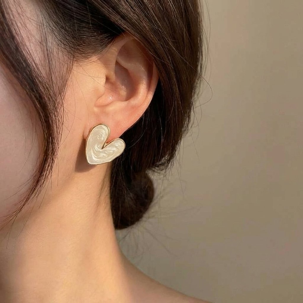 Infuse your jewelry collection with a touch of romantic modernism. These Ethereal Blush Heart Studs feature a captivating marbled enamel inlay, blending soft cream and warm peach tones to create a unique, fluid pattern in every piece. Encased in a polished gold-tone frame, the asymmetric heart silhouette offers a contemporary twist on a classic symbol of love. The high-gloss finish catches the light beautifully, making them a versatile accessory that transitions effortlessly from a casual brunch to an elegant evening affair. Their lightweight design ensures comfort, while the dreamy, swirled aesthetic adds a sophisticated pop of color to any ensemble.