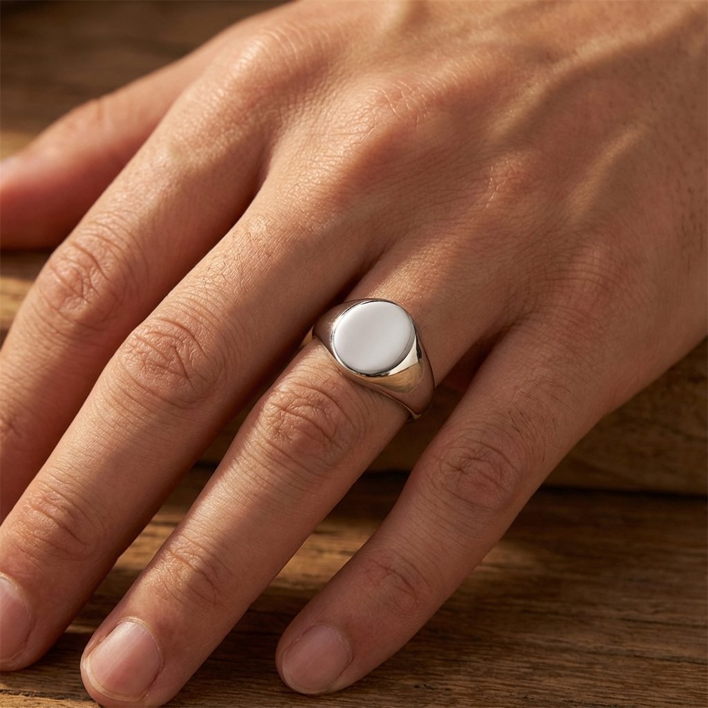 Elevate your everyday style with this timeless Classic Silver Round Signet Ring. Featuring a sleek, high-polish band that tapers smoothly for a comfortable fit, the ring highlights a prominent, finely textured round face. Whether worn bare for a bold, minimalist statement or used as the perfect blank canvas for a custom engraving of your initials or family crest, this versatile piece is designed to be a staple in any jewelry collection.