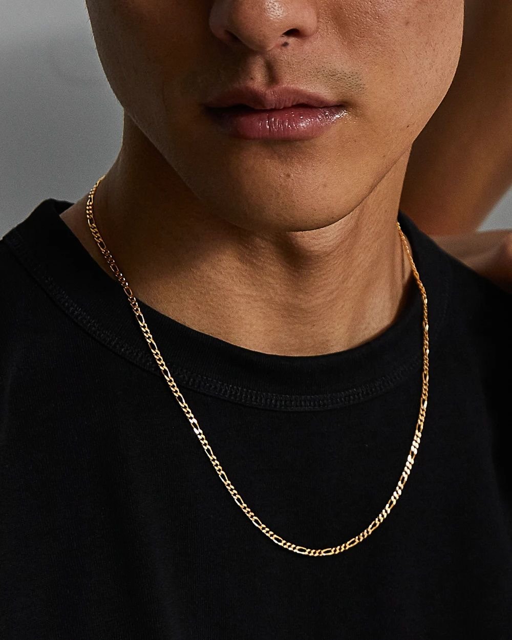 Elevate your everyday style with the timeless elegance of the Aurelia Gold Figaro Necklace. Crafted with meticulous attention to detail, this stunning piece features the iconic Figaro link pattern—a sophisticated alternation of three standard round links followed by a single elongated oval link. The radiant yellow gold finish catches the light beautifully, making it a versatile statement piece that works perfectly worn solo or seamlessly layered with your favorite pendants. Whether you are dressing up for a formal event or adding a touch of luxury to your casual wardrobe, this classic chain is designed to be a lasting staple in your jewelry collection.