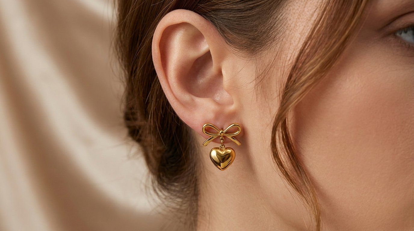 • Charming Dual Design: Features a classic ribbon bow stud paired with a dangling 3D puffy heart.