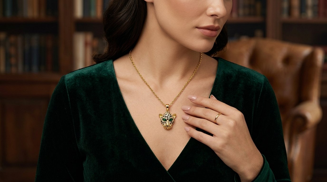Make a fierce statement with this striking panther pendant, featuring mesmerizing emerald-green eyes and a meticulously iced-out crystal finish. Suspended elegantly on a sleek gold-toned snake chain, this necklace seamlessly blends high-end luxury with untamed streetwear energy. Crafted to catch the light from every angle, it is the ultimate standout piece to confidently elevate your everyday style.