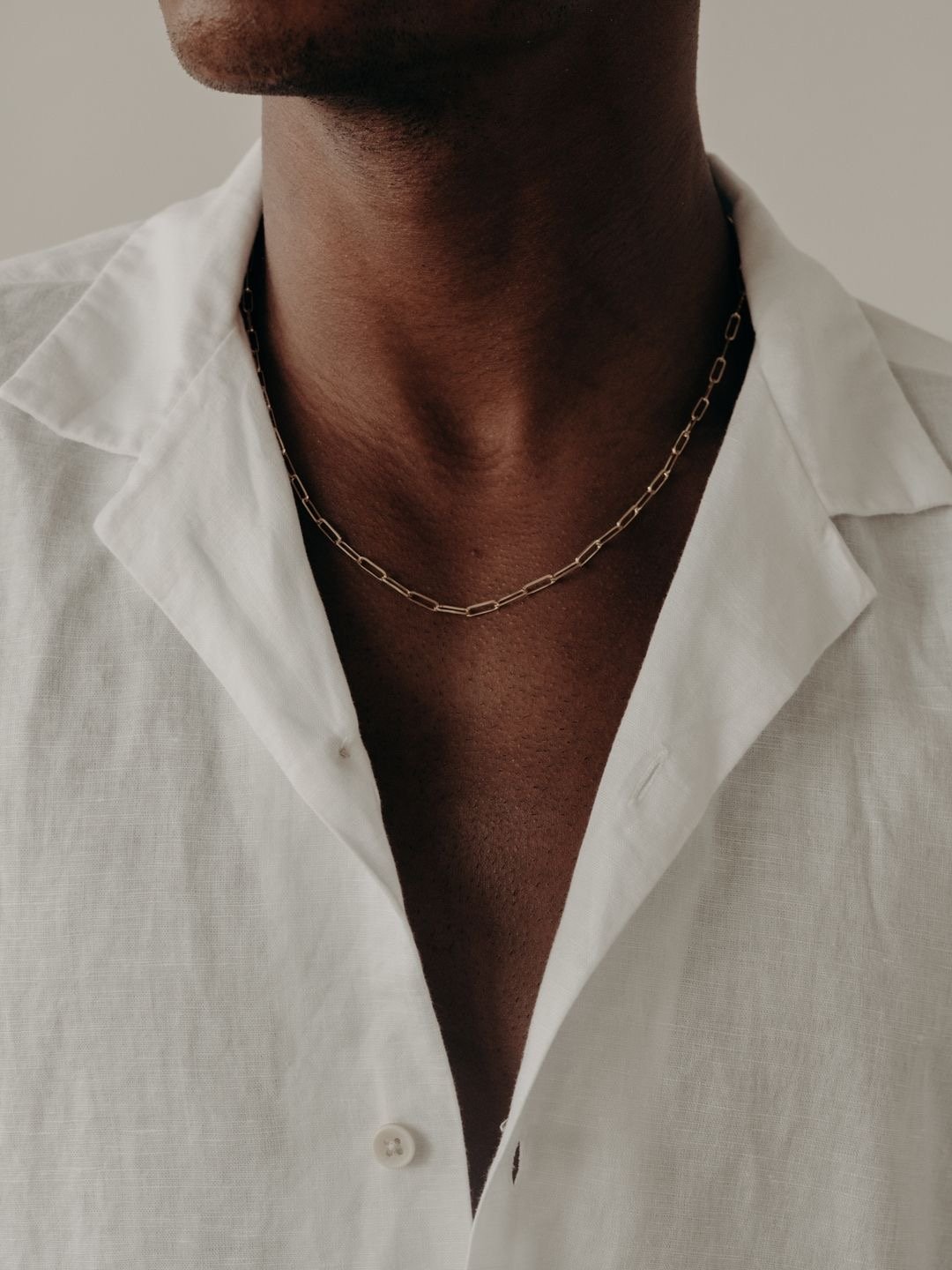 Introducing The Lumen Elongated Link Necklace, a modern masterpiece that redefines the classic chain with architectural precision and minimalist grace. Expertly crafted in a radiant, highly-polished white metal, this piece features a series of striking, elongated paperclip-style links articulated in a clean, linear pattern. The geometric purity of each open link creates a luminous sense of space and light, allowing the necklace to drape with an effortless, contemporary elegance. Designed for the modern tastemaker, its sleek lines and brilliant mirror finish offer a sophisticated look that transitions seamlessly from a tailored blazer to an evening gown. It’s the ultimate versatile essential, perfect for layering or standing alone as a statement of refined clarity.