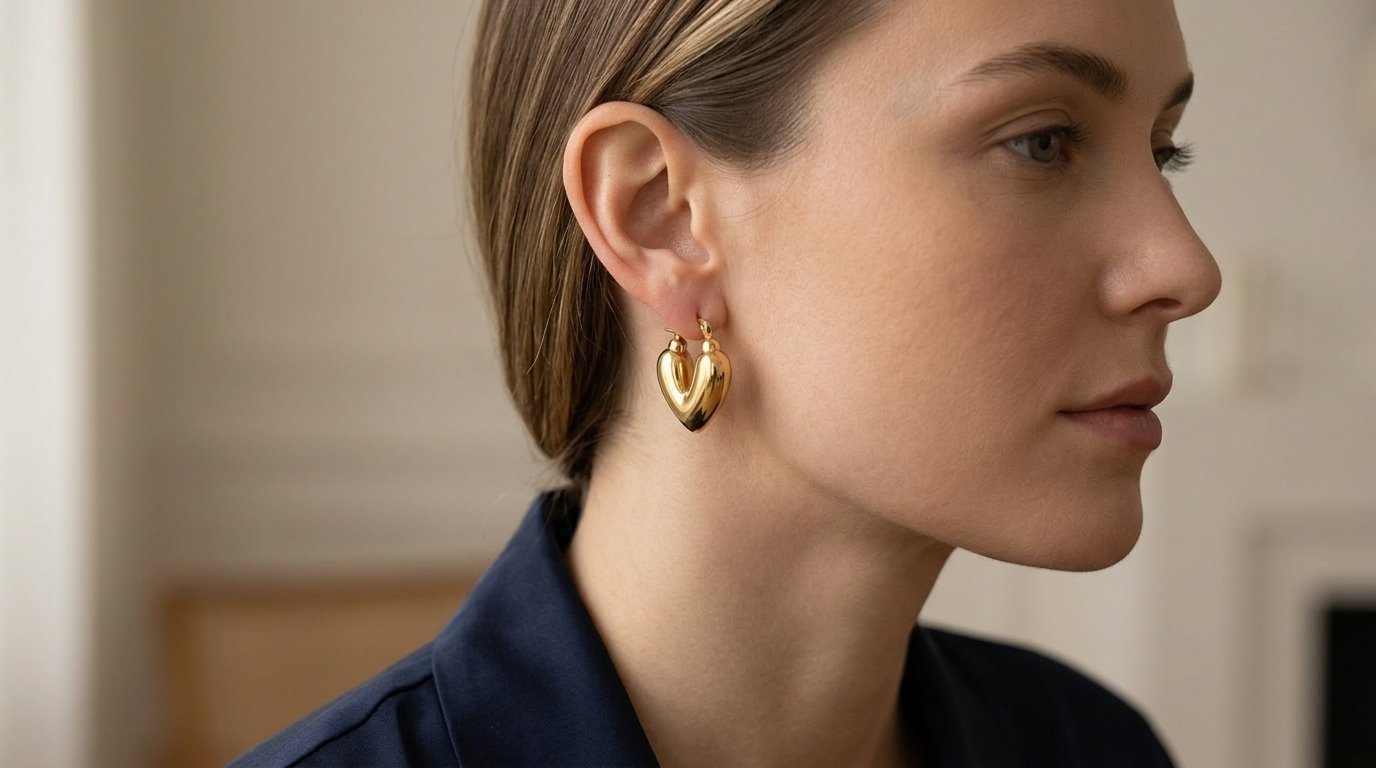 Elevate your everyday style with the Lumina Puffy V-Shape Gold Hoops. Crafted with a brilliant, highly polished gold-tone finish, these earrings offer a modern twist on the classic hoop. Their unique, chunky chevron silhouette catches the light effortlessly, adding a touch of bold sophistication to any outfit. Designed for both comfort and ease, they feature a convenient hinged latch-back closure that ensures they stay perfectly in place from day to night. Whether you are dressing up for a special evening or adding flair to your casual wardrobe, these minimalist yet striking earrings are the ultimate statement accessory.