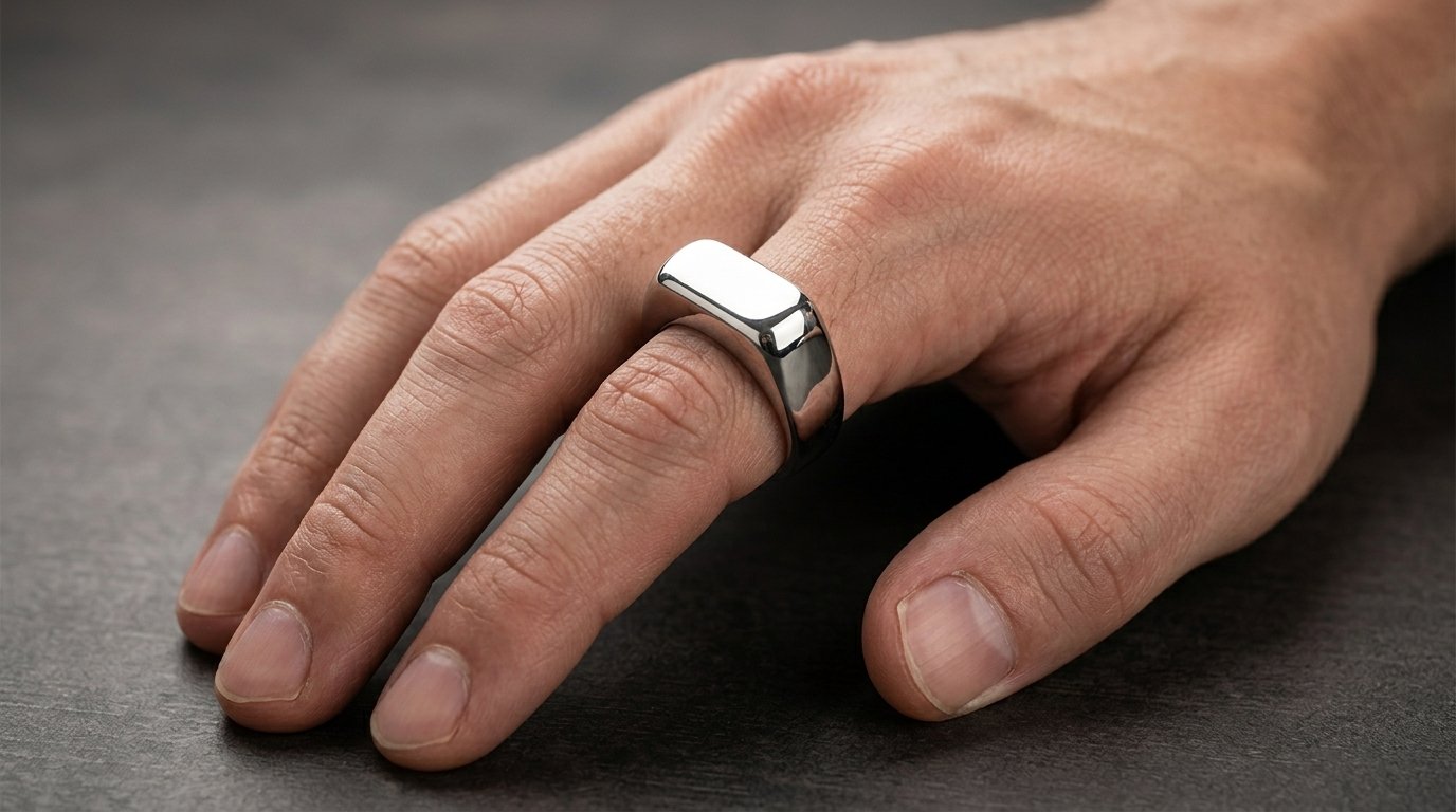 Elevate your everyday rotation with this Gold Rectangular Signet Ring, a modern reimagining of a timeless classic. Crafted with a high-polish finish and a sleek, flat-top face, it offers a bold geometric silhouette that transitions seamlessly from casual streetwear to formal attire. The solid construction provides a premium weight and feel, while the tapered band ensures maximum comfort for all-day wear. Whether worn solo for a minimalist statement or stacked with other essentials, this ring is an anchor piece for any contemporary jewelry collection.