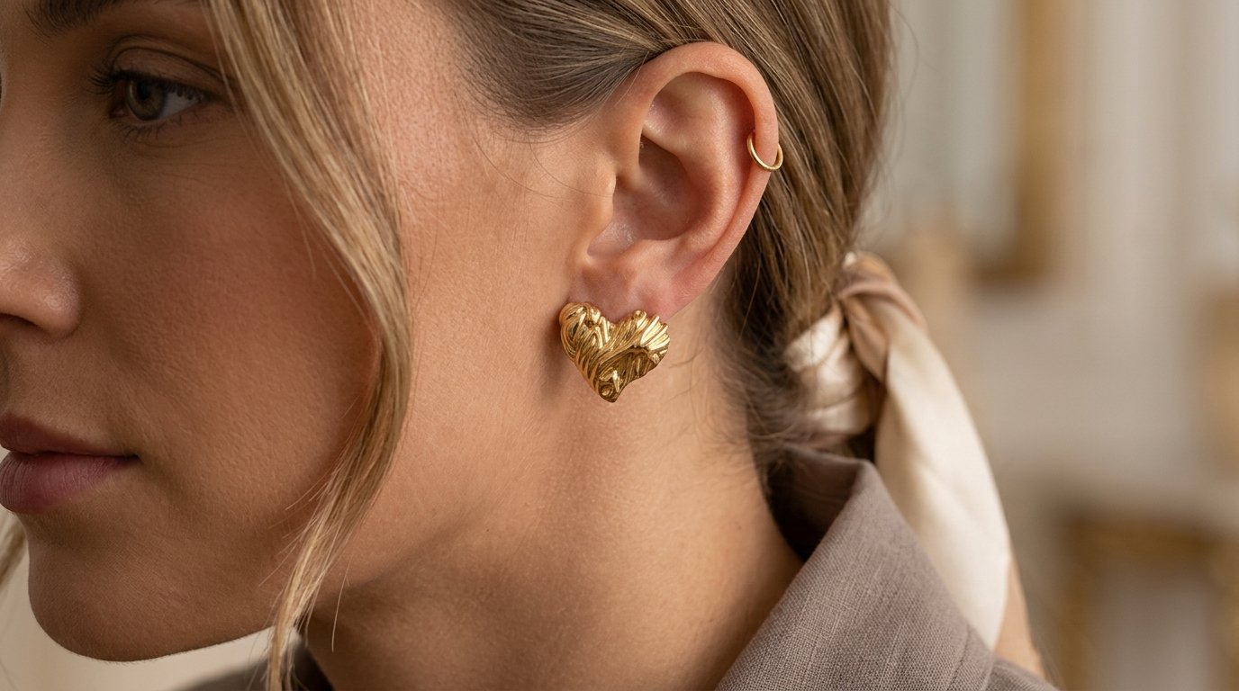 Elevate your everyday style with these striking textured gold heart earrings. Crafted with a unique, molten-like finish, they catch the light beautifully from every angle to add instant glamour to any outfit. These lightweight statement pieces offer a modern twist on a classic romantic silhouette, making them the perfect addition to your curated jewelry collection.