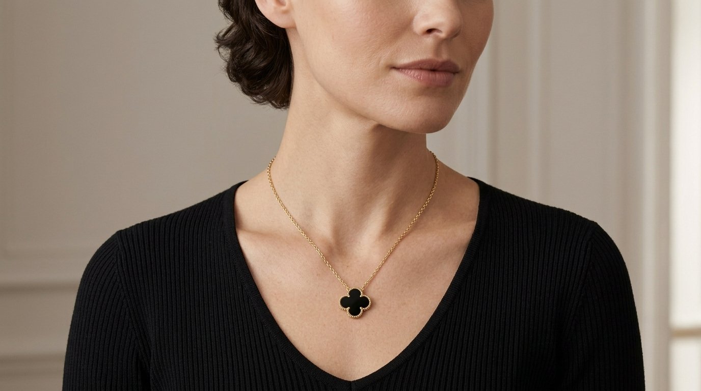 Elevate your everyday style with this stunning necklace featuring a vintage-inspired, four-leaf clover pendant. The gleaming gold-tone chain beautifully complements the smooth, white iridescent inlay nestled within the textured beaded border. Designed for both elegance and versatility, this lightweight piece transitions flawlessly from casual daytime wear to sophisticated evening looks. It is a timeless addition to any jewelry collection that effortlessly captures attention and adds a touch of charm to any outfit.
